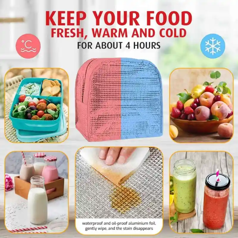 • Multi-Layer Cationic Fabric + Aluminum Foil Insulation — thick insulation maintains food temperature for hours. Hot meals stay warm, cold items stay fresh — no reheating needed at the office
