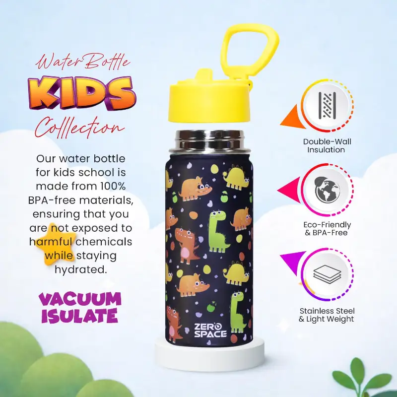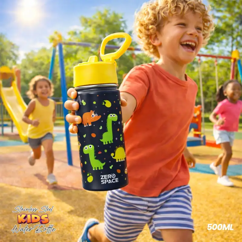 Keep your child safely hydrated every school day with the ZeroSpace Kids Stainless Steel Water Bottle in Black — 100% BPA-free, spill-proof, and lightweight for daily school use across Pakistan. The sleek black finish makes it a favourite among boys and older kids who want something that looks cool without compromising on safety or durability.