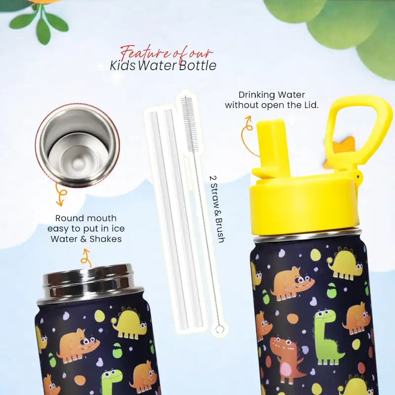 - 100% BPA-Free, 304 Stainless Steel — food-grade, non-toxic, and completely safe for children. No harmful chemical leaching, no plastic taste — just clean, fresh water all day long