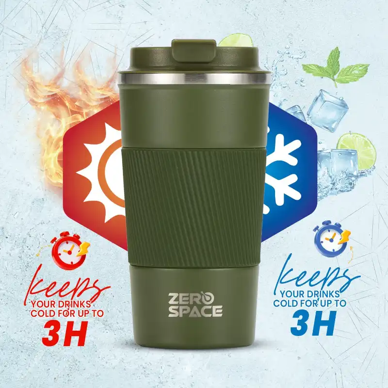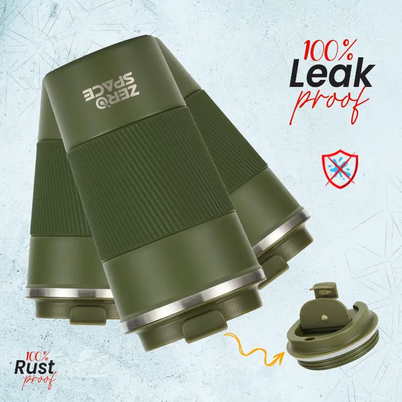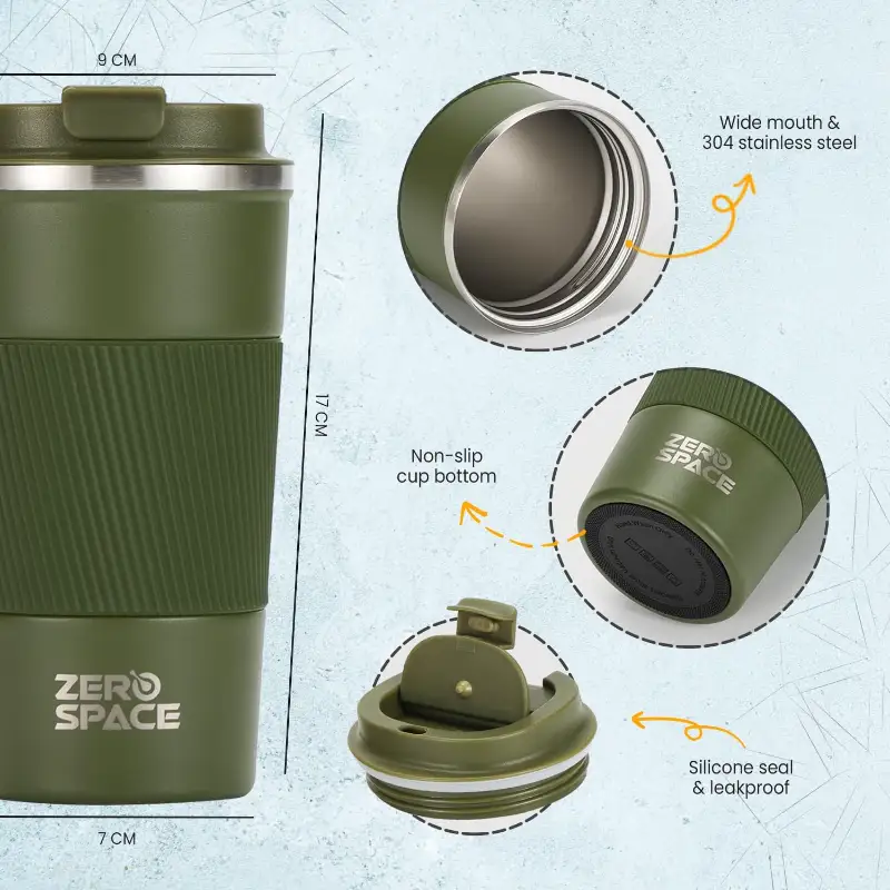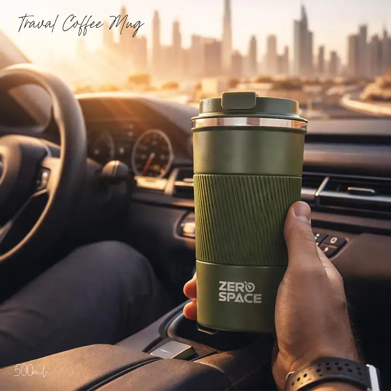 Fresh look, perfect temperature. The ZeroSpace Travel Coffee Mug in Green (500ml) keeps your chai and coffee hot for 12 hours — leakproof, car cup holder compatible, and built for Pakistan’s daily commuters. The bold green finish makes it the most distinctive travel mug in our collection — for those who want to stand out while staying fuelled.